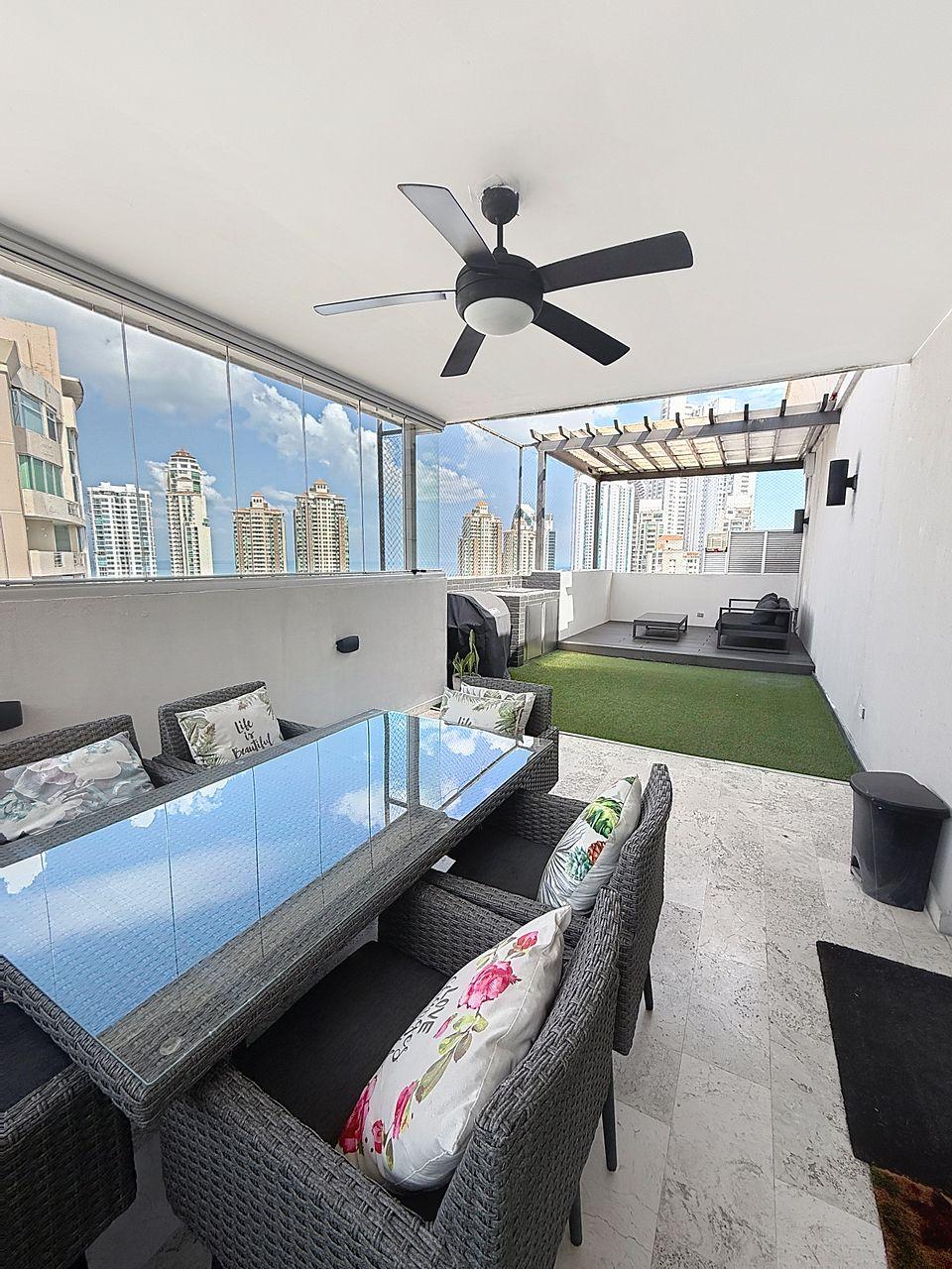 Exclusivo apartamento tipo penthouse disponible para alquiler en la prestigiosa zona de Punta Pacífica. Una propiedad de tres niveles que ofrece amplios espacios y una terraza privada.